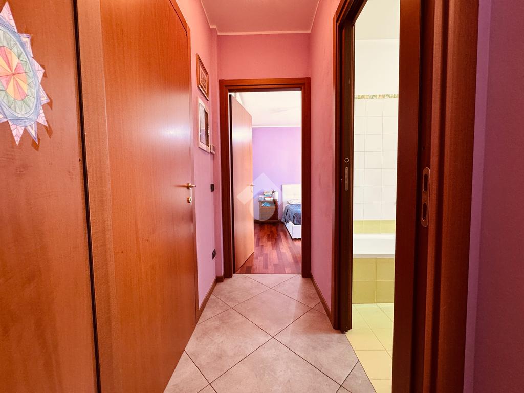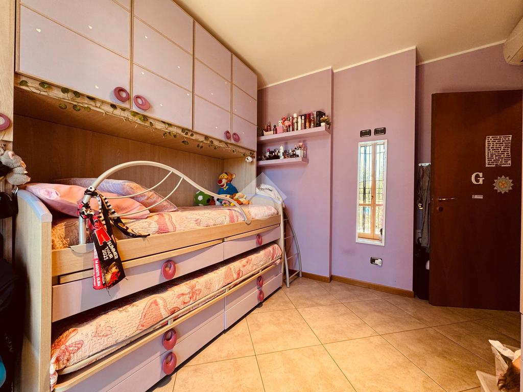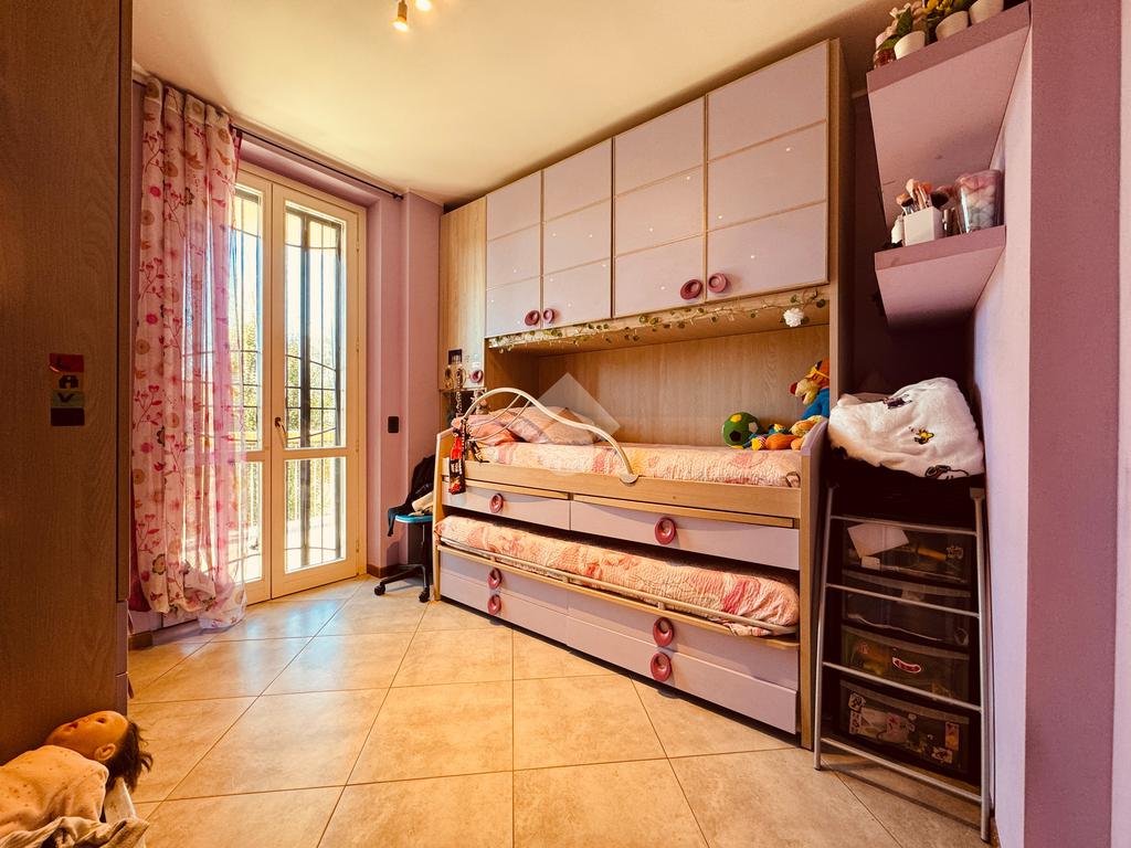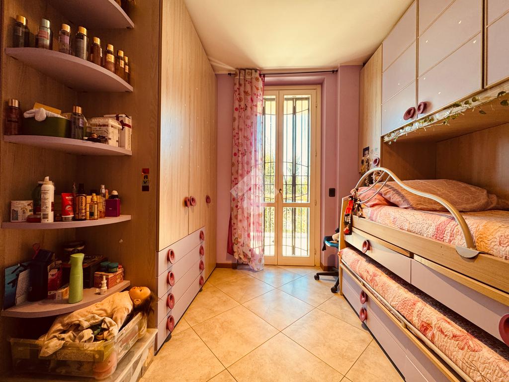 Tramite il disimpegno si accede alle altre stanze che compongono l'appartamento: un servizio finestrato, una camera matrimoniale ed una cameretta. La zona notte è servita da un terrazzo.