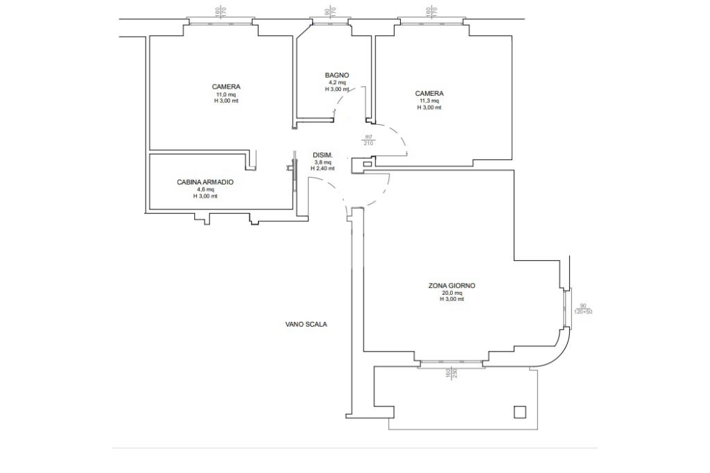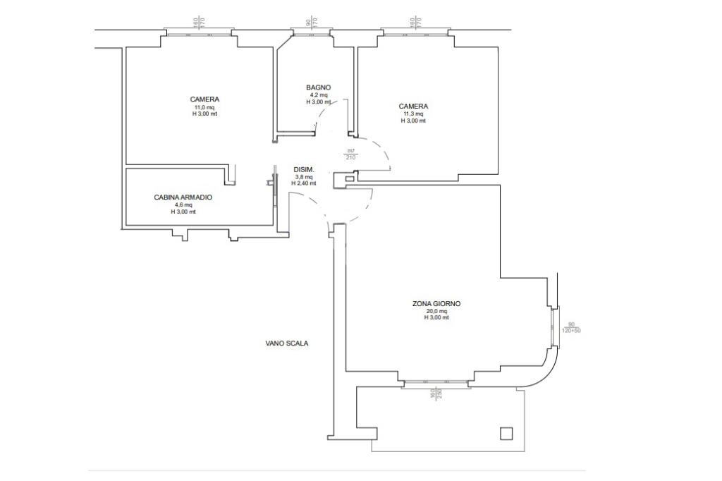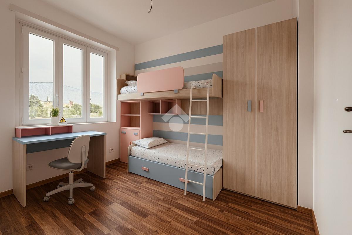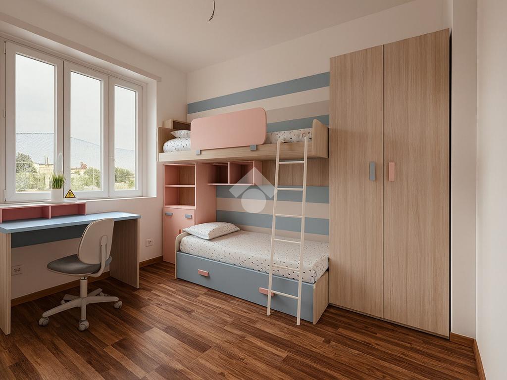 La zona notte, a cui si accede tramite un piccolo disimpegno, è composta da una camera matrimoniale, dotata di una pratica cabina armadio, che garantisce spazio e funzionalità, una cameretta ed un servizio finestrato.