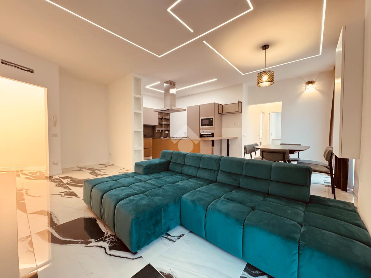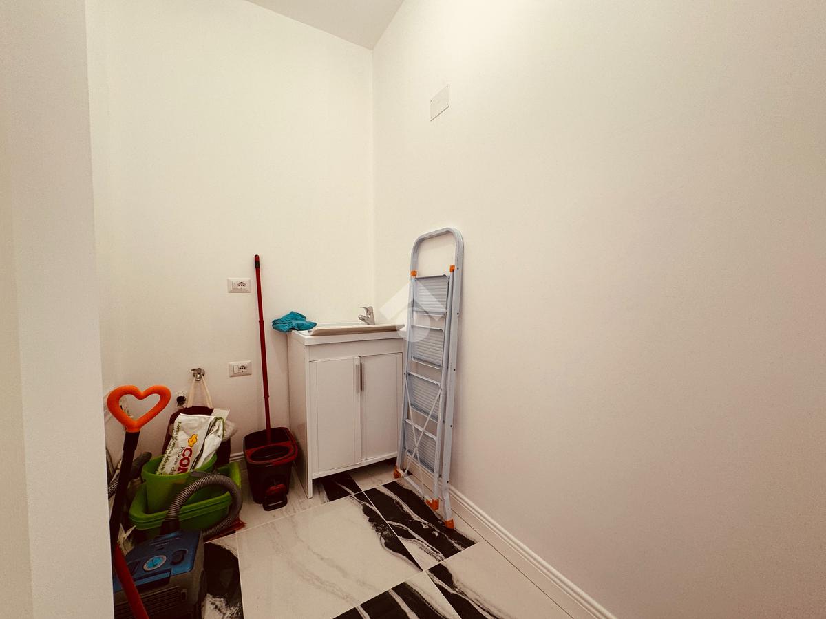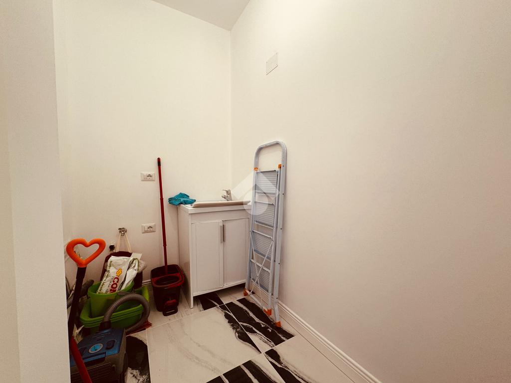 L'ingresso, da cui si accede ad una comoda lavanderia, conduce ad un'ampia zona giorno con cucina a vista, ideale per chi ama gli spazi aperti e luminosi. La zona è servita da balcone.