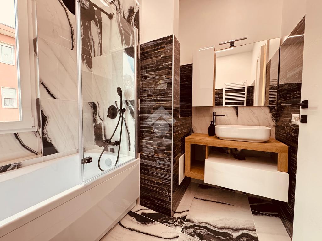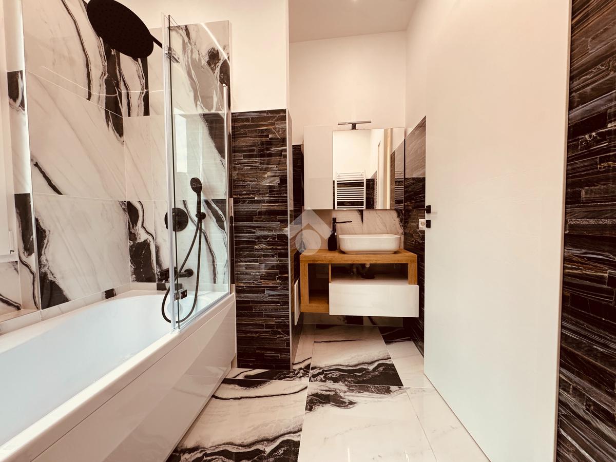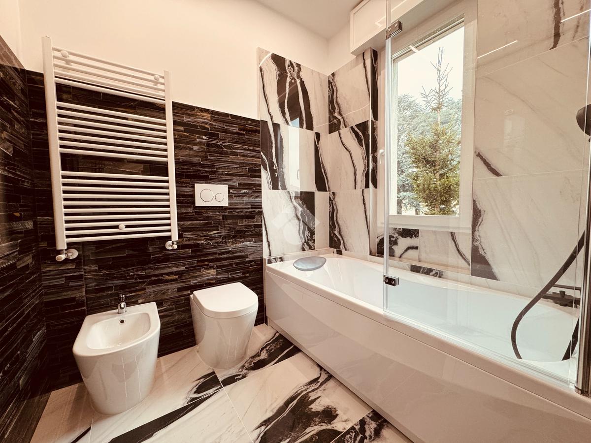 Un secondo bagno finestrato serve l'intero appartamento, offrendo un doppio servizio funzionale.
