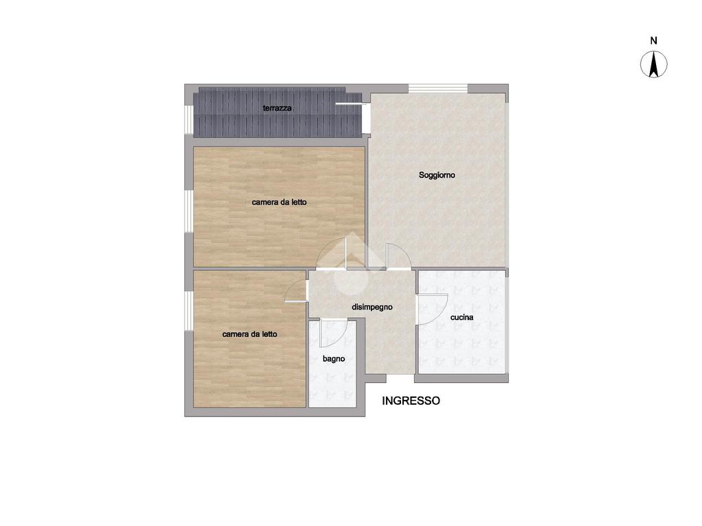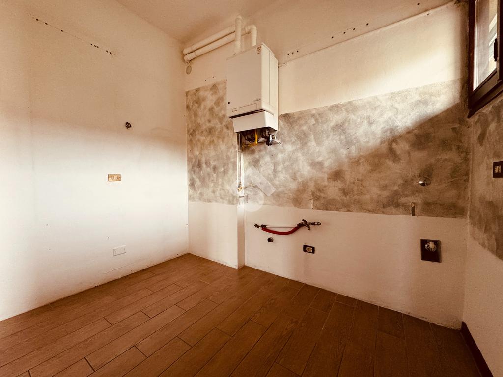 L'appartamento, di 90 mq/ca, offre spazi ben distribuiti e funzionali. L'ingresso, tramite un comodo corridoio, conduce alla zona giorno, molto luminosa grazie alla sua esposizione a sud. Tramite la porta finestra si raggiunge il terrazzo con vista. La cucina è separata ma è possibile renderla a vista sul soggiorno abbattendo la parete che confina con la zona giorno.
