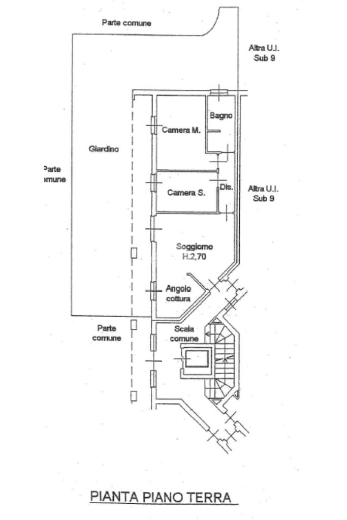 L'immobile è servito da un piccolo giardino privato su due lati. Completano l'abitazione un box singolo ed una cantina.